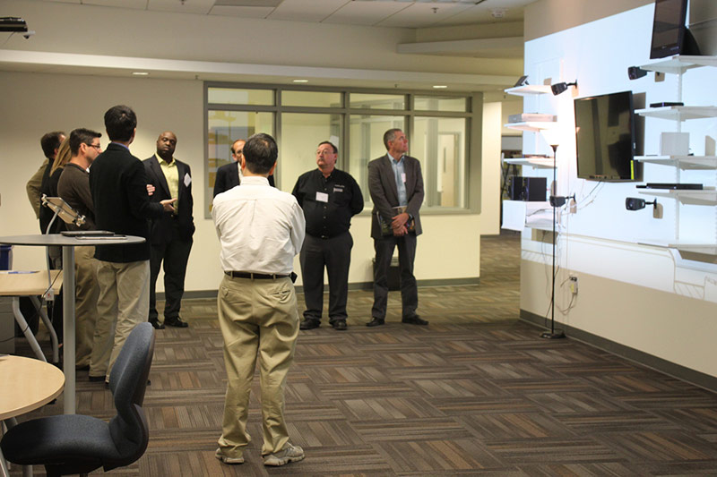 Touring the CalPlug facilities, the guests from Thales were able to experience demos of the Wall of Power and the Kilowatt Hour Challenge, and learn about CalPlug’s research of plug load signatures, set top boxes, and smart sleep.